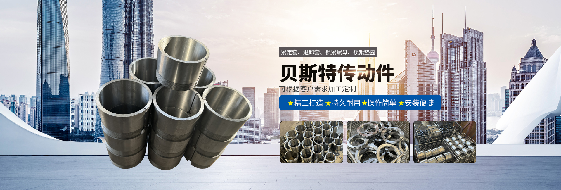 本公司主要產品有H、HE、HA、HS等多個系列,緊定套、退卸套、鎖緊螺母、鎖緊墊圈,并承接各類傳動件加工業務